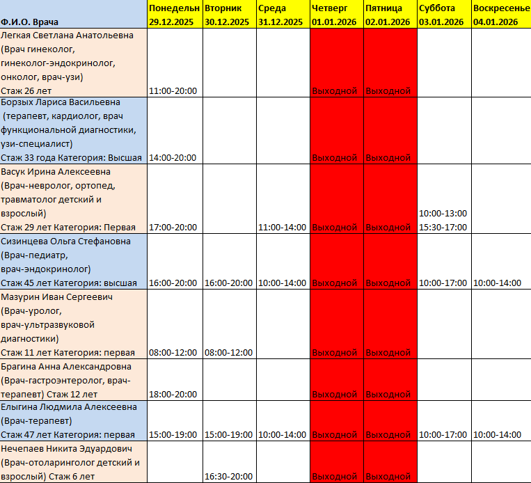 *01.01, 02.01, 04.01, 07.01, 11.01.2026 - выходной;